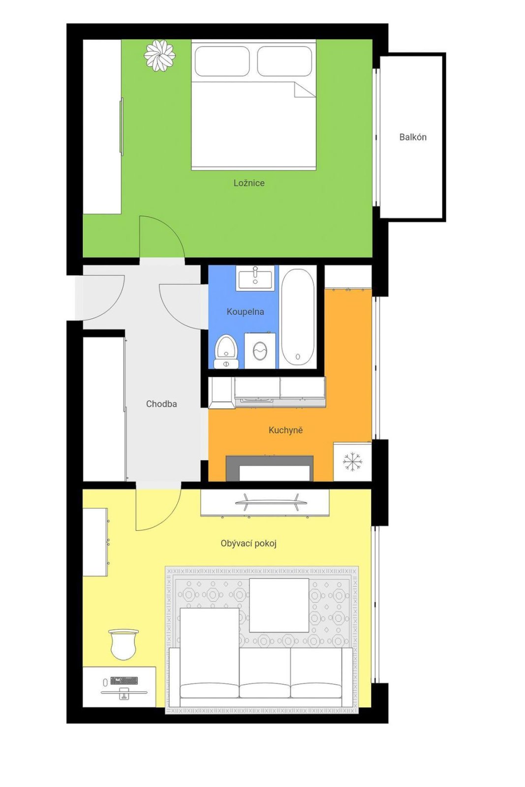 Dispozice 2+1 nabízí praktické rozdělení místností, dostatek prostoru