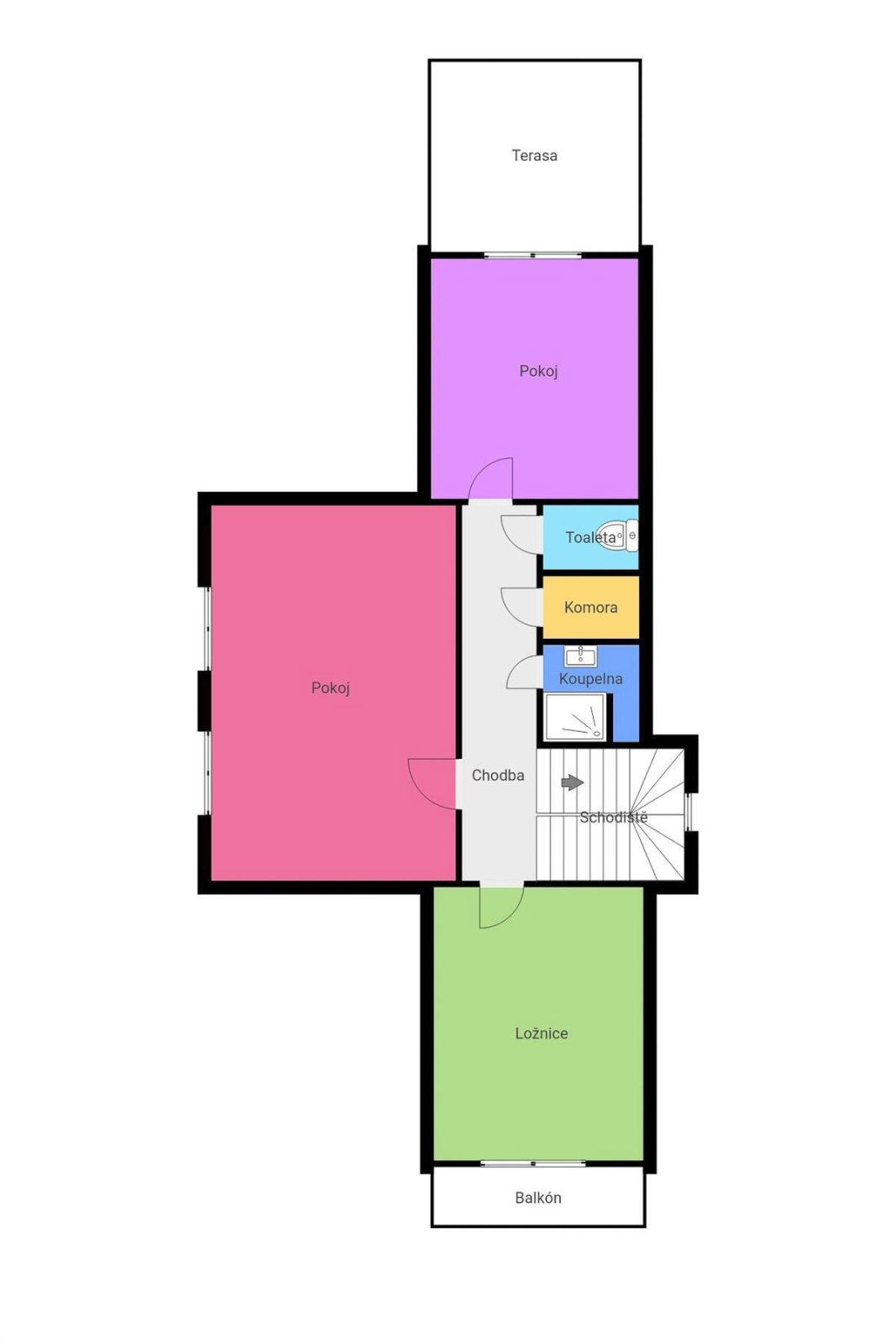 V podkroví se nachází prostorná terasa o velikosti 20,70 m² a lodžie