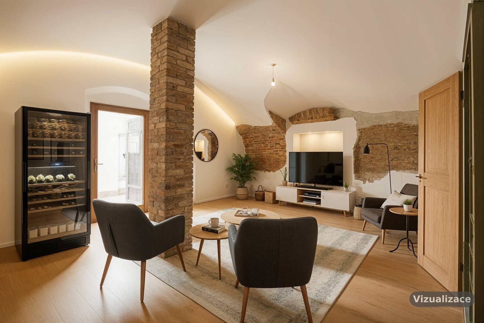 připomínající sklepení, která nabízí možnost využití jak k bydlení,